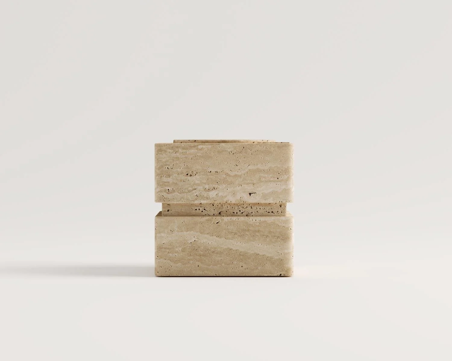 Each vase is completely unique with the unique vein structure of travertine, soft color transitions and porous texture.