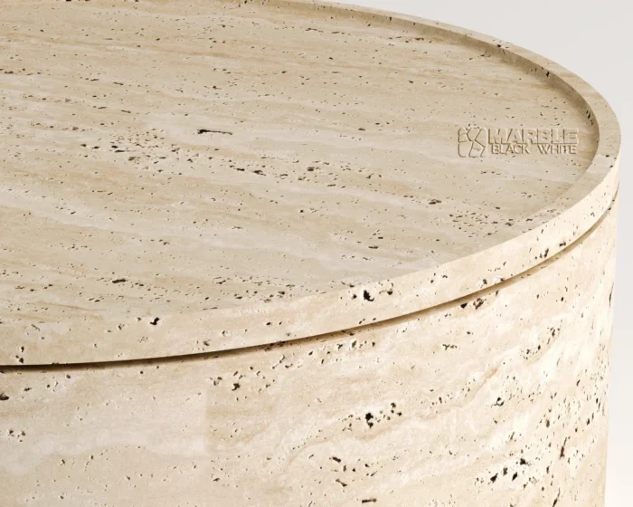 The center table made of natural travertine stone is designed to be compatible with both classic and contemporary decoration styles.